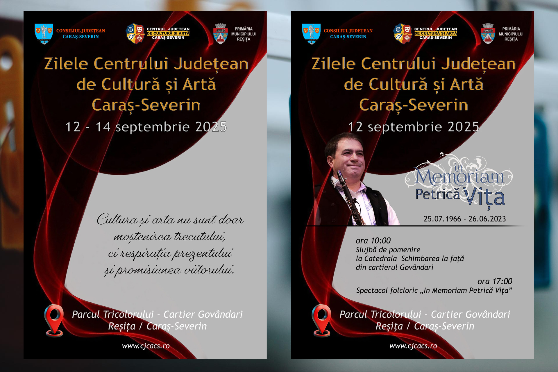 Zilele Centrului de Cultură și Artă Caraș-Severin. În perioada 12-14 septembrie 2025, la Reșița – în inima Banatului montan, la poalele Semenicului – celebrăm trei zile de cultură, artă și emoție.